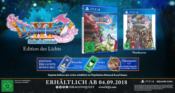 DRAGON QUEST XI: Streiter des Schicksals ist das langerwartete RPG vom Erschaffer der Reihe, Yuji Horii, Charakterdesigner Akira Toriyama und dem Komponisten der Reihe, Koichi Sugiyama, das am 4. September für PlayStation 4 und STEAM erscheinen wird. Das Spiel ist ein komplett eigenständiges Erlebnis, das ganz neue Charaktere, eine wunderschöne Welt voller Details, genau abgestimmte, rundenbasierte Kämpfe und eine fesselnde Erzählung bietet, die Langzeitfans wie Neueinsteiger in die Reihe ansprechen wird.