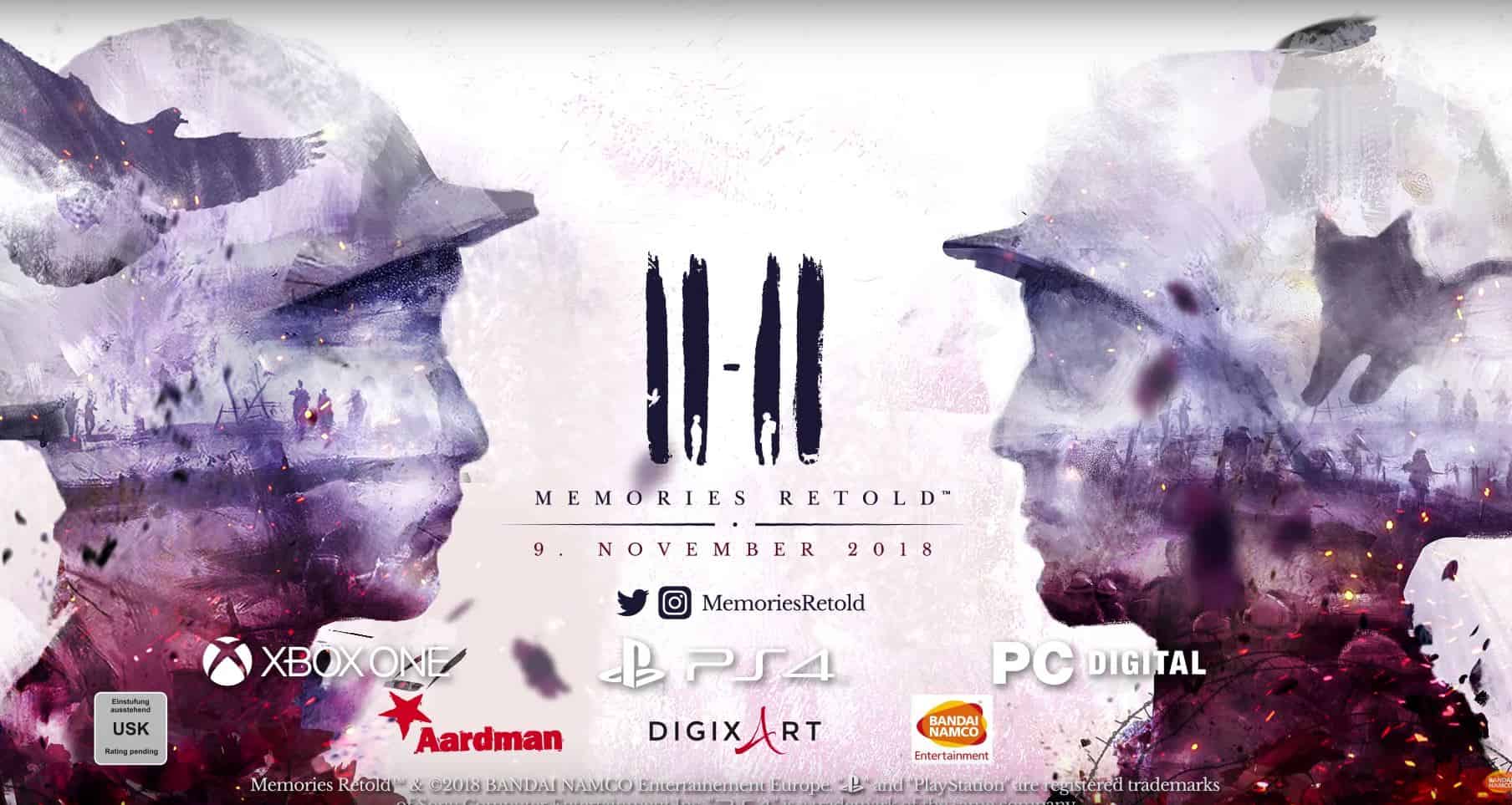 Von Aardman und DigixArt entwickelt, wird der Spieler beide Seiten eines komplexen, historischen Ereignisses erleben – in einem Anti-Kriegsspiel, das für den Frieden einsteht. Die von wahren Ereignissen inspirierte Geschichte von 11-11: MEMORIES RETOLD wird mithilfe einer innovativen künstlerischen Technik zum Leben erweckt, die spielbare Charaktere erschafft, als würden diese aus einem Gemälde stammen.