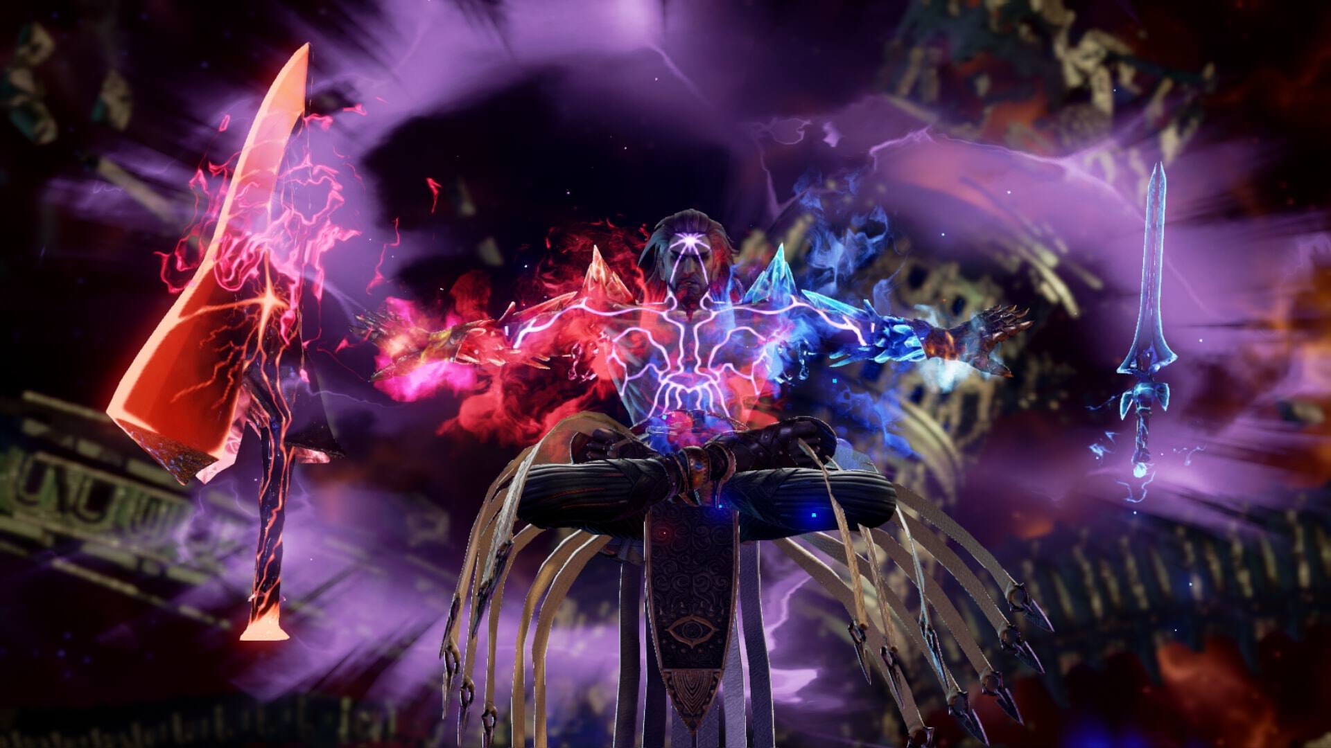 Als Waffe nutzt er seine Kampfhandschuhe mit dem Namen „Palindrome“. Der rechte Handschuh beinhaltet einen Splitter des Soul Edge, während im linken ein Splitter des Soul Calibur eingearbeitet ist. Diese Fragmente statten ihn mit Erinnerungen über vergangene Schlachten aus, woraus er seine Kampfkraft zieht. Dank dieser Kampfhandschuhe kann er verschiedene Waffen aus der Luft erschaffen und sie mit tödlicher Präzision einsetzen.