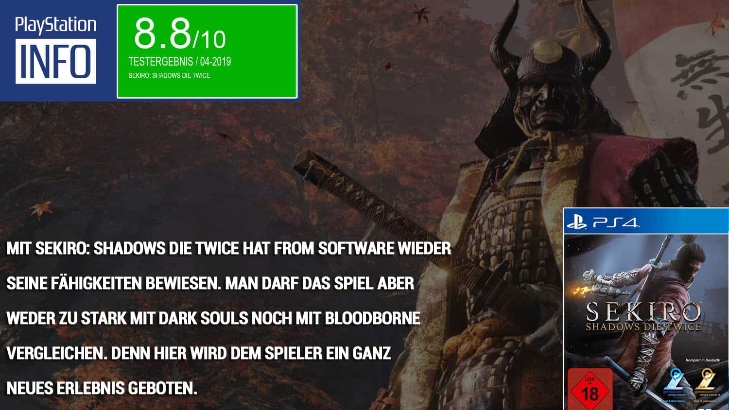 Mit Sekiro: Shadows Die Twice hat From Software wieder seine Fähigkeiten bewiesen. Man darf das Spiel aber weder zu stark mit Dark Souls noch mit Bloodborne vergleichen. Denn hier wird dem Spieler ein ganz neues Erlebnis geboten. Natürlich bietet das Spiel einige Gemeinsamkeiten, wie etwa das Spawnen von Gegner nach dem Tod oder die Buddha-Statuen, die auch das Leuchtfeuer in Dark Souls hätten sein können. Jedoch wird dem Spieler hier ein Action-Adventure geboten, in dem es darum geht, die Umgebung zu erkunden und Kämpfe auszufechten. Rollenspiel-Fans, die lieber ihren Charakter leveln möchten, gucken in die Röhre. Außerdem gehört eine hohe Frustresistenz dazu, um das Spiel zu meistern. Denn die Bosse sind alle hart, ob groß oder klein. Wer jedoch ein gutes Kampfsystem sucht, das einen belohnt, es zu lernen, der wird hier definitiv belohnt. Alle anderen, die ein neues Dark Souls oder Bloodborne in einem neuen Gewand gesucht haben, könnten jedoch enttäuscht werden.