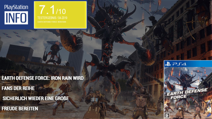 Im Jahr 1996 zerstörten Aliens mit riesigen Raumschiffen in Roland Emmerich´s Independence Day die größten Städte der Erde. Ein Jahr später wurden in Starship Troopers Massen an „Bugs“ bekämpft. Beide Filme sind, unschwer zu erkennen, dem Sci-Fi-Genre zuzuschreiben. Wo Independence Day aber eher Blockbuster-Entertainment ist, gehört Starship Troopers eher zu den trashigen Sci-Fi-Filmen mit nicht weniger Fans. 2019 erscheint nun Earth Defense Force: Iron Rain und bedient sich an viele Elemente aus den oben genannten Filmen, aber auch an japanischen Monsterfilmen. Ob das Spiel nur was für knallharte Fans ist oder auch eine breitere Masse begeistern kann, wollen wir in unserem Test zeigen.