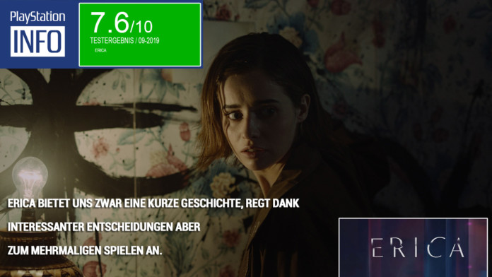 Wenn man genauer auf die Entscheidungen blickt, fällt auf, dass diese oft nicht erahnen lassen, was die Protagonisten in der nächsten Szene unternimmt. Zwar sind Aktionen wie das Öffnen einer Kisten eindeutig, doch insbesondere bei Dialogen muss man sich meist überraschen lassen. So kann es gelegentlich vorkommen, dass etwas ausgeführt wird, was man eigentlich nicht möchte. Nichtsdestotrotz ist Erica für ein Videospiel gut inszeniert. Es ist clever aufgebaut, sodass der Charme eines Films nicht vergeht. Des Weiteren gelingt es, trotz der Auswahl von Handlungen oder Antworten das Gefühl zu erzeugen, dass Szenen flüssig laufen. Natürlich gibt es immer wieder kleinere Unterbrechungen, diese stören aber nicht.