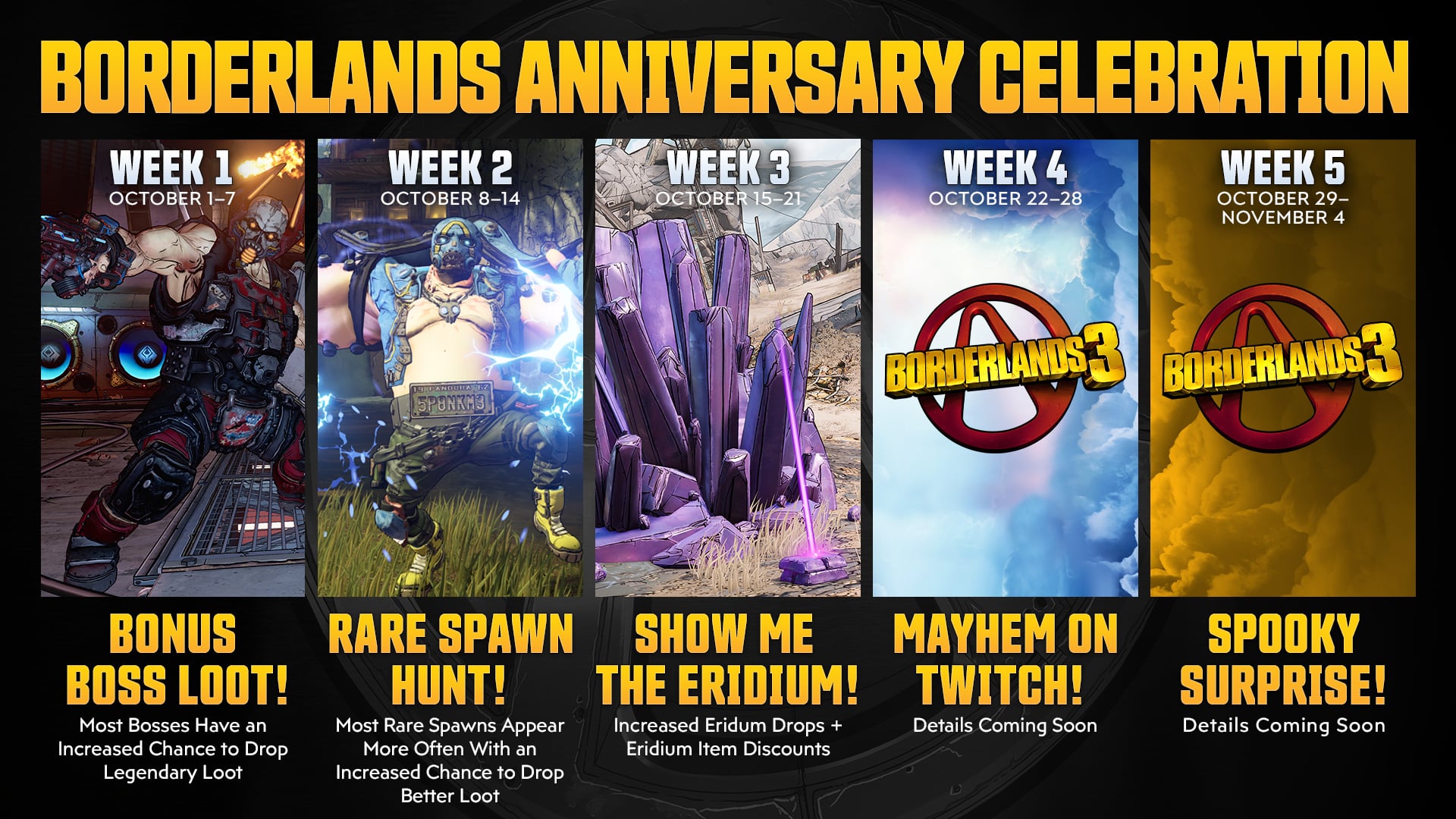 Die beliebte Borderlands Reihe feiert weiter ihr 10-jähriges Jubiläum. Aus diesem Grund startet heute ein neues Event im aktuellen Ableger Borderlands 3, das euch mehr Eridium bringt und euch Rabatte im entsprechenden Geschäft spendiert.