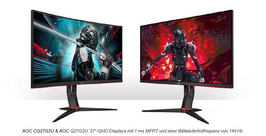 Displayspezialist AOC kündigt zwei neue 68,6 cm (27″)-Gaming-Displays mit QHD-Auflösung (2560 x 1440 Pixel) aus seiner G2-Serie an: den AOC Q27G2U und das Curved-Modell AOC CQ27G2U mit einer dynamischen Krümmung von 1500R für ein immersives Spielerlebnis.