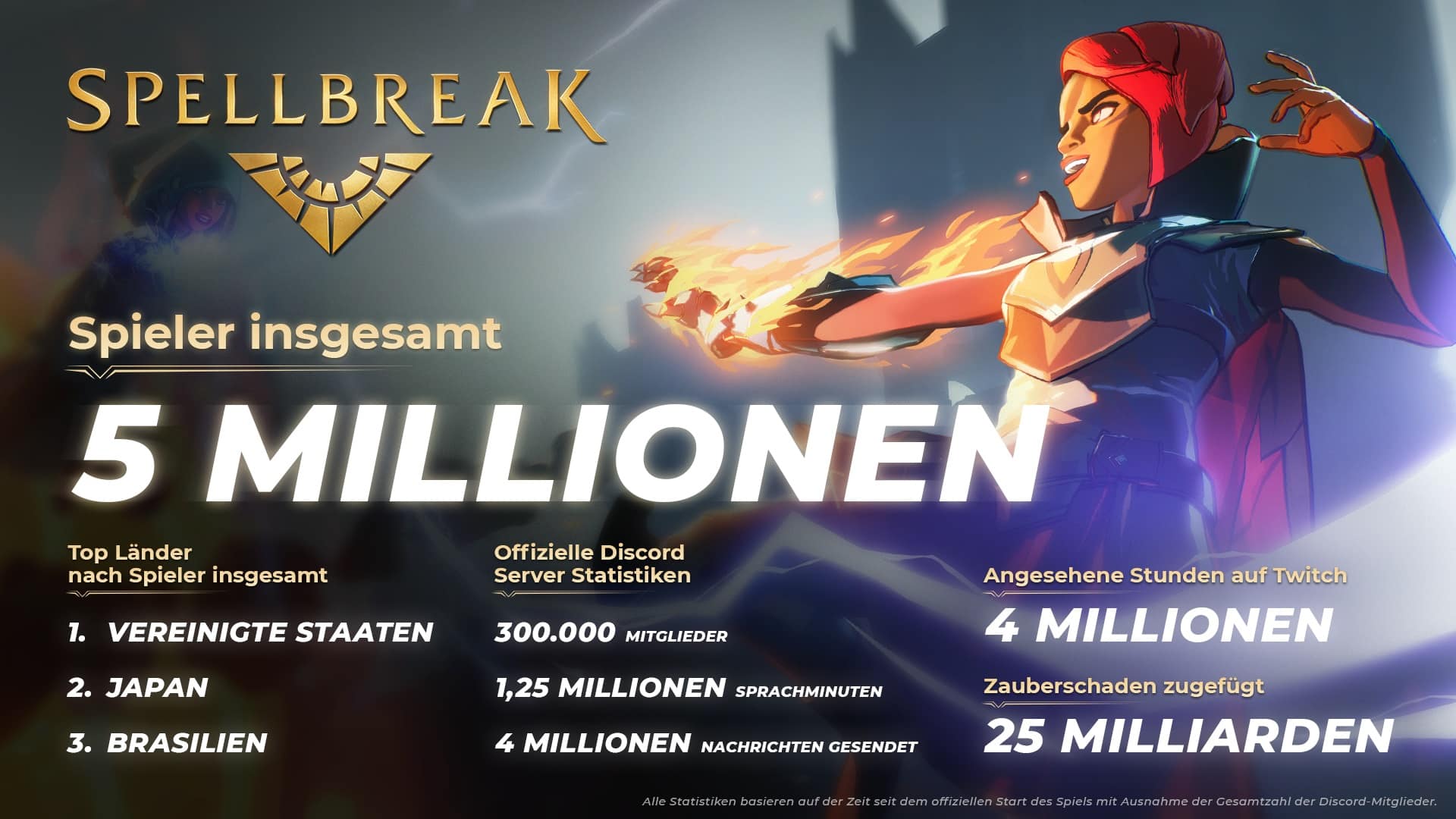 Proletariat veröffentlichte einige spannende Zahlen zu seinem Anfang September gestartetem magischen Battle-Royale-Spiel Spellbreak. So hat man den Meilenstein von 5 Millionen Spielern erreicht und durfte bereits 300.000 Mitglieder auf dem offiziellen Discord-Server willkommen heißen.