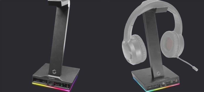 Speedlink EXCELLO Illuminated Headset Stand, 3-Port USB 2.0 Hub, integrated Soundcard, black ist ab Anfang Oktober für 29,99 € (UVP) erhältlich.