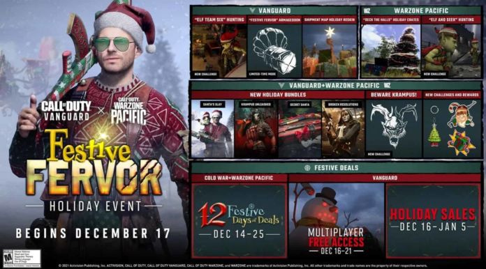 – Das Hauptereignis: Schließe festliche Inbrunst-Herausforderungen ab und werde belohnt. Insgesamt 13 Gegenstände, darunter ein Waffenbauplan zum Abschließen aller sechs Vanguard- oder Warzone Pacific- Herausforderungen.
