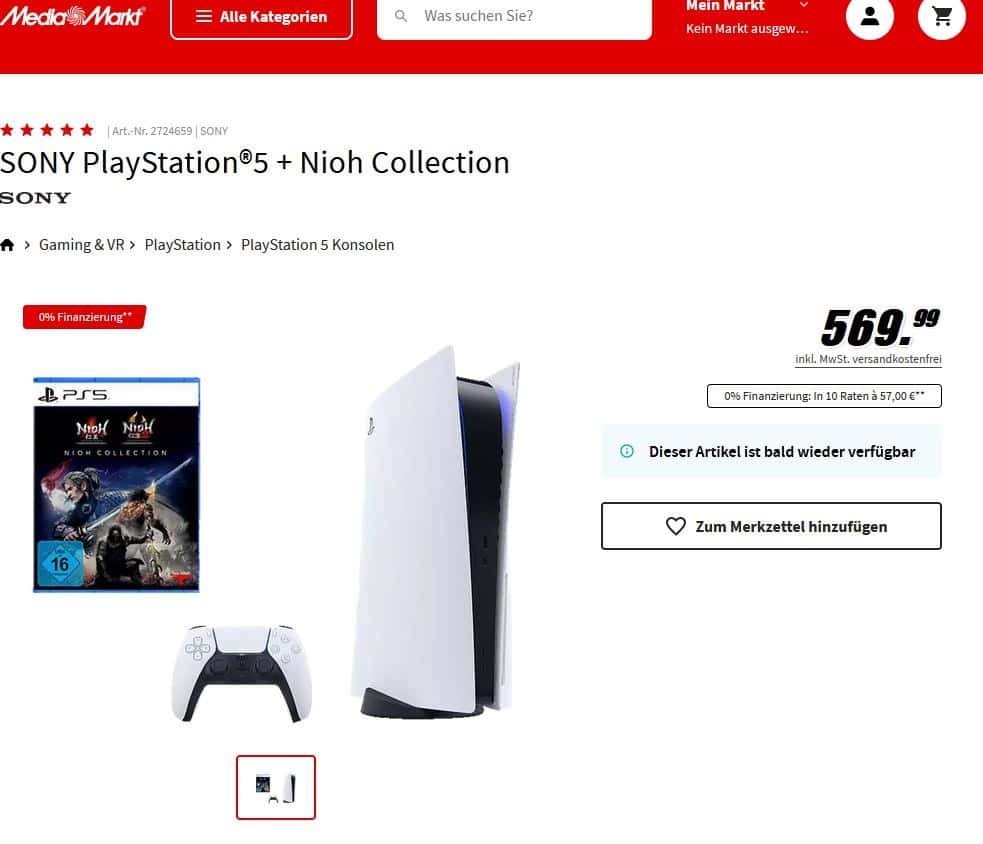 Nun scheint es auch online bald weiter zugehen, so scheint es. Saturn und MM hatten heute bereits einige PS5 Konsolen gelistet, die nur noch auf grün gestellt werden müssen. Diese Taktik kennen wir ja schon, also es könnte heute soweit sein und ihr könnt bei Saturn und dann bestimmt auch bei MM wieder online PS5 Konsolen bestellen.