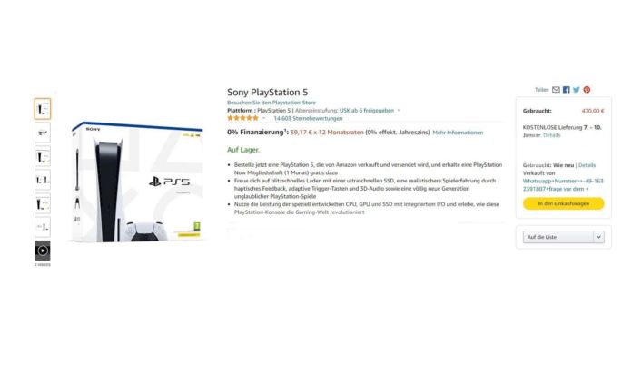 PlayStation 5 Konsole für 470€ auf Amazon verfügbar.