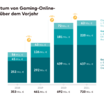 Nach dem großen Wachstumssprung von 50 Prozent 2020 ist der Umsatz mit Gaming-Online-Diensten 2021 um weitere 4 Prozent auf 720 Millionen Euro gestiegen. Entscheidend zu diesem Wachstum haben Gaming-Abo-Dienste wie der Xbox Game Pass, EA Play und Ubisoft+ beigetragen, deren Umsatz um 22 Prozent auf 220 Millionen Euro gestiegen ist. Einen Rückgang um 13 Prozent auf 63 Millionen Euro gab es hingegen bei Cloud-Gaming-Diensten. Einer der Gründe hierfür ist, dass Cloud-Gaming-Funktionen teils kostenfrei in andere Services integriert wurden, so dass kein eigenständiger Umsatz erzielt wird. Auch der Umsatz von Online-Gaming-Diensten ist um 2 Millionen Euro auf 437 Millionen Euro gesunken. Diese werden häufig zu den verschiedenen Spielekonsolen angeboten und umfassen – je nach Angebot – kostenfreie monatliche Spiele, Games-Rabatte, die Möglichkeit Online zu spielen oder auch Cloud-Speicher für Spielstände.