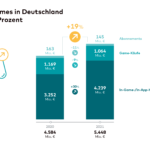 So wuchs der Umsatz mit Computer- und Videospielen um insgesamt 19 Prozent auf rund 5,4 Milliarden Euro. Stärkster Wachstumstreiber hierbei waren abermals die sogenannten In-Game- und In-App-Käufe, die um insgesamt 30 Prozent auf rund 4,2 Milliarden Euro zulegen konnten. Hintergrund ist der anhaltende Trend zu Free-to-Play-Spielen sowie die insgesamt längere Unterstützung einzelner Titel, die immer wieder mit neuen – kostenfreien wie kostenpflichtigen – Inhalten versorgt werden. Dagegen ist der Umsatz mit dem einmaligen Kauf von Games um 9 Prozent auf rund 1,1 Milliarden Euro eingebrochen. Auch der Umsatz mit den monatlichen Abonnement-Gebühren für einzelne Spiele – häufig setzen Online-Rollenspiele auf dieses Modell – ging um 11 Prozent auf 145 Millionen Euro zurück.