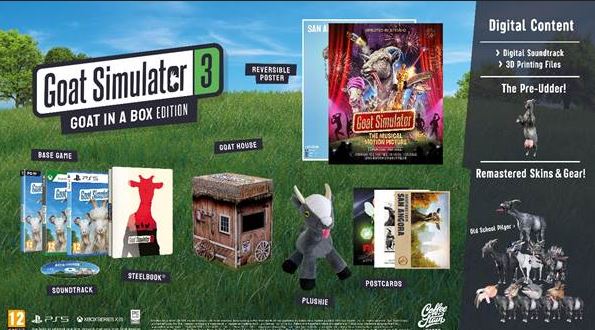 Der Goat Simulator 3 kann ab sofort sowohl digital als auch physisch vorbestellt werden. Fans haben die Wahl zwischen der Goat Simulator 3 Pre-Udder Edition, die zusätzliche Ausrüstung für das Spiel enthält, und er Goat Simulator 3 Digital Downgrade Edition, die mit einer Menge bekannter und überarbeiteter Inhalte aus der Vergangenheit für den guten alten Nostalgie-Kick sorgt.