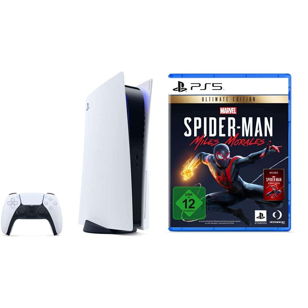 Das Sony PlayStation 5 + Marvel’s Spider-Man: Miles Morales Ultimate Edition inkl. Spider-Man Remastered- [PlayStation 5] ist auf Amazon verfügbar. Jetzt gerade könnt ihr bei Amazon die PlayStation5 Konsole bestellen.