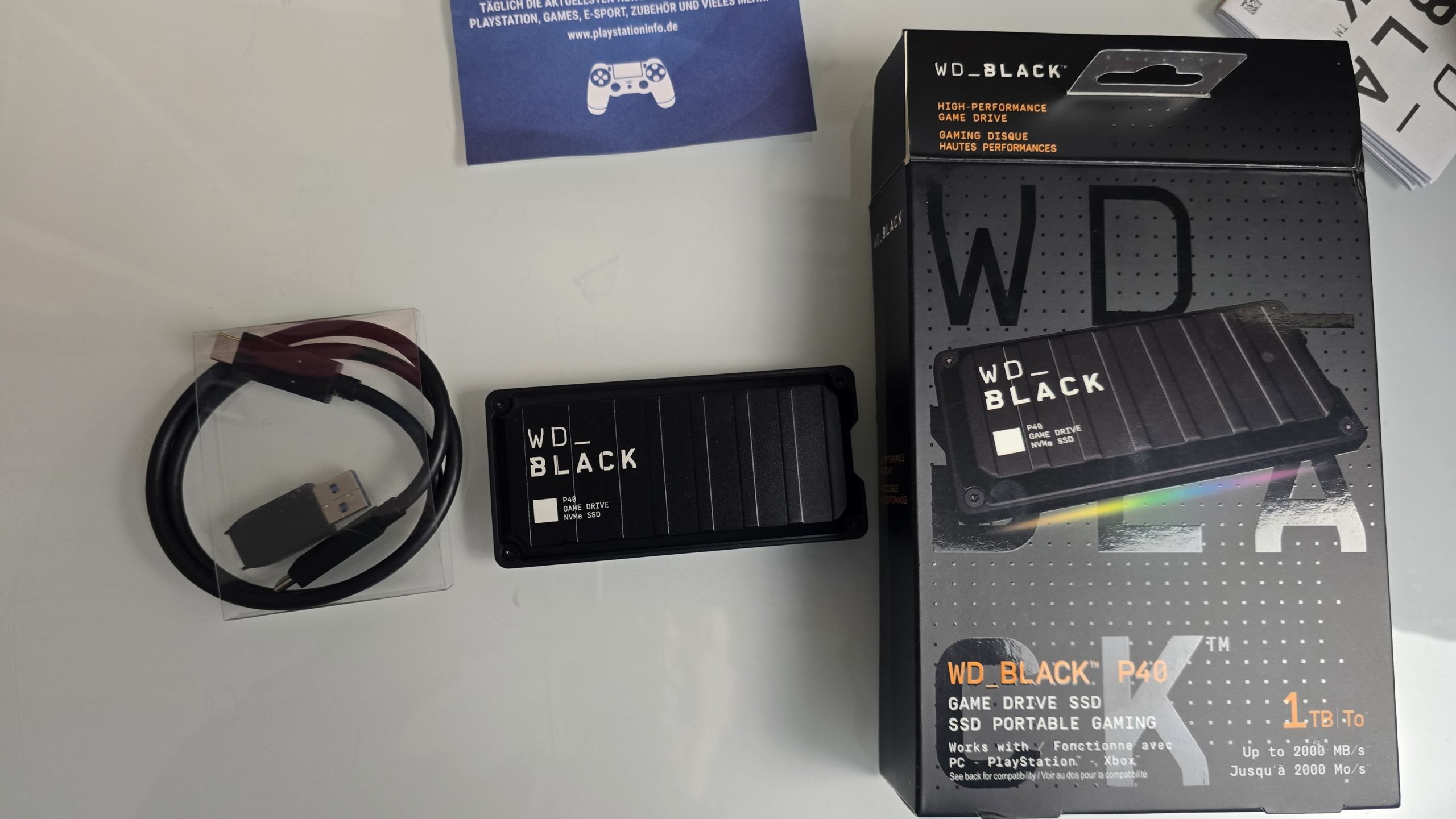 Die WD_BLACK P40 Game Drive SSD kombiniert Geschwindigkeit, Design und Vielseitigkeit in einem beeindruckenden Paket. Egal, ob Du Deine Gaming-Erfahrung verbessern, Deine Kreativprojekte beschleunigen oder einfach nur eine zuverlässige Speicherlösung für unterwegs suchst – die P40 erfüllt all diese Anforderungen.