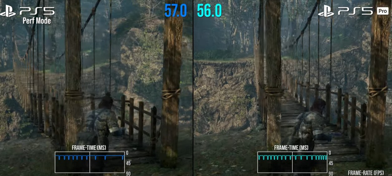 Wie die Technik-Analysten von Digital Foundry berichten, kämpft Metal Gear Solid Delta: Snake Eater auf PS5 und PS5 Pro mit deutlichen Framerate-Schwankungen. Das Spiel schafft es nicht, konstant bei 60 FPS zu bleiben – in intensiven Szenen sinkt die Bildrate sogar bis in den Bereich von 30 FPS.