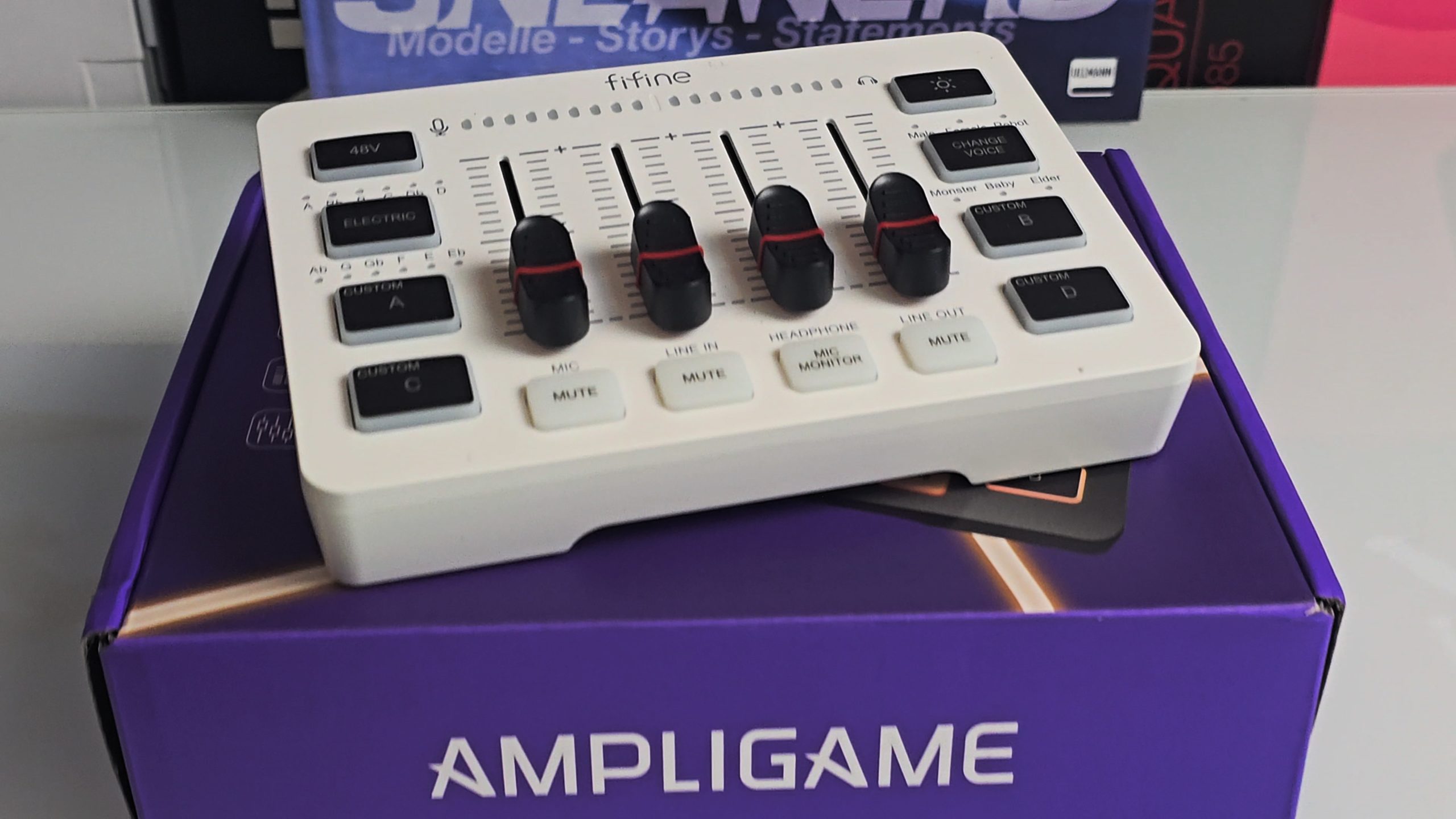 Ich suchte eine Lösung, mit der ich mein Setup fürs Streaming, Gaming und gelegentliche Podcast-Aufnahmen ohne großen Aufwand verbessern kann – und da kam der FIFINE AmpliGame SC3 ins Spiel. Verpackung auf, angeschlossen – schon auf den ersten Blick macht er einen soliden Eindruck: Kompaktes Gerät, viele Regler, Buttons und hübsches RGB-Licht. Nicht übertrieben protzig, aber modern und freundlich.