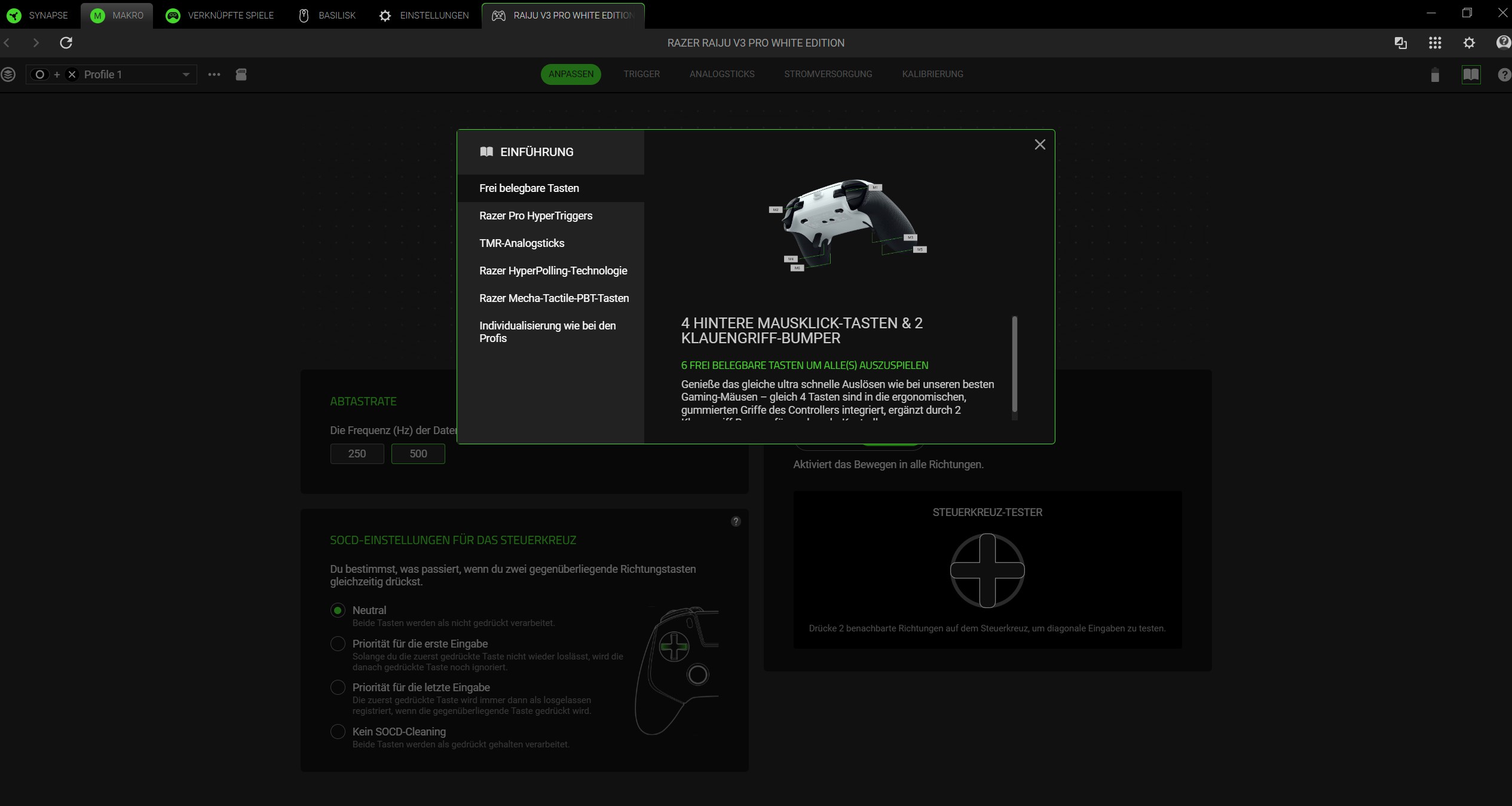 - oder per Razer Mobile App, mit der man Profile, Stick-Kurven, Trigger-Verhalten und Button-Belegung einstellen kann.