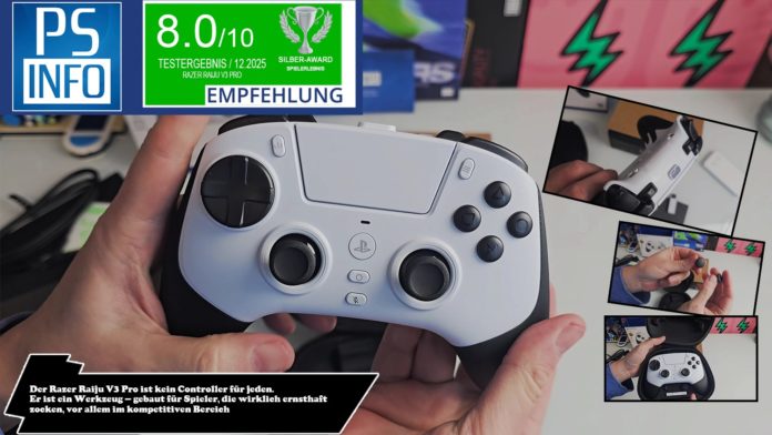 Pro-Controller für die PS5 gibt es inzwischen einige, aber so richtig spannend wurde es erst mit dem Razer Raiju V3 Pro. Razer verspricht: ein kabelloser PS5-Controller, entwickelt mit E-Sport-Profis, symmetrische TMR-Sticks, sechs zusätzliche Tasten, HyperTriggers – kurz: ein Pad, das dir in Call of Duty, Fortnite, Battlefield 6 & Co. buchstäblich die letzten Millisekunden rausholt.