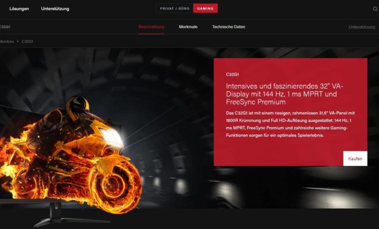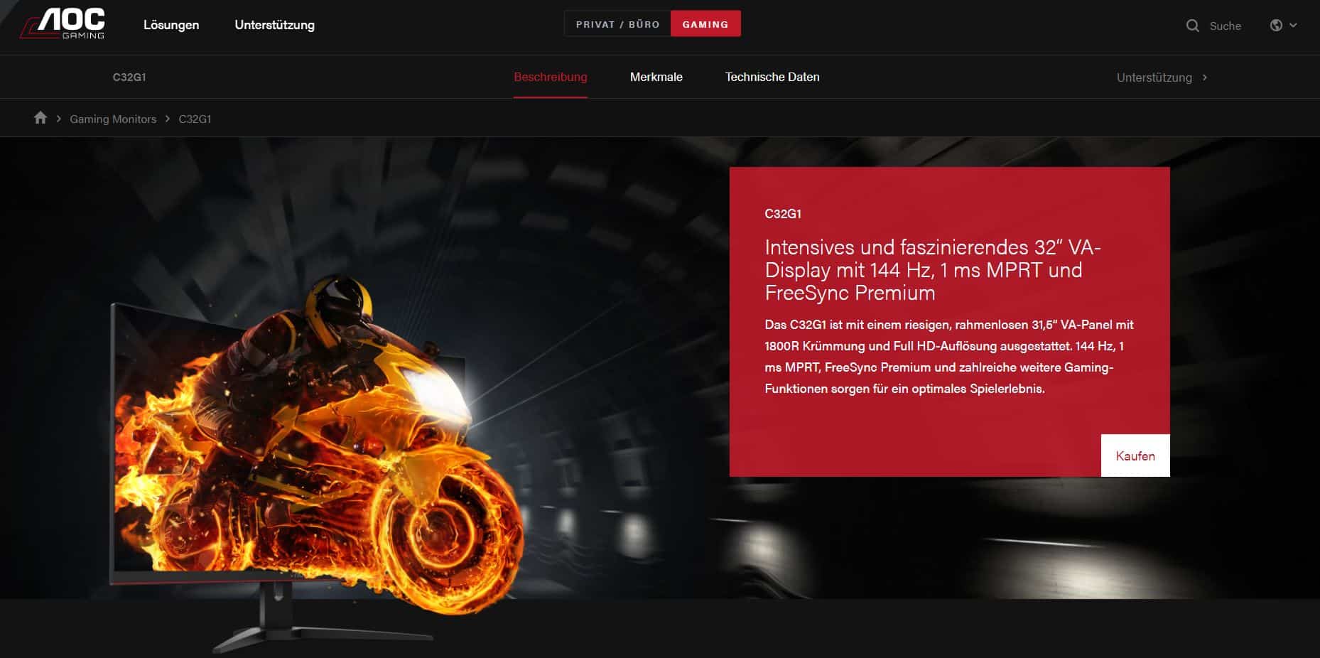 Der AOC C32G1 nutzt die Freesync-Technologie von AMD. Freesync funktioniert mit AMD- als auch Nvidia-Grafikkarten und sorgt für eine flüssigere Darstellung auf dem Bildschirm. Dazu stimmt Freesync die von der Grafikkarte erzeugte Bildrate mit der des Monitors besser ab. Die Technik verhindert den Tearing-Effekt, also das Auftreten von störenden Bildartefakten, was natürlich keine schlechte Sache ist.