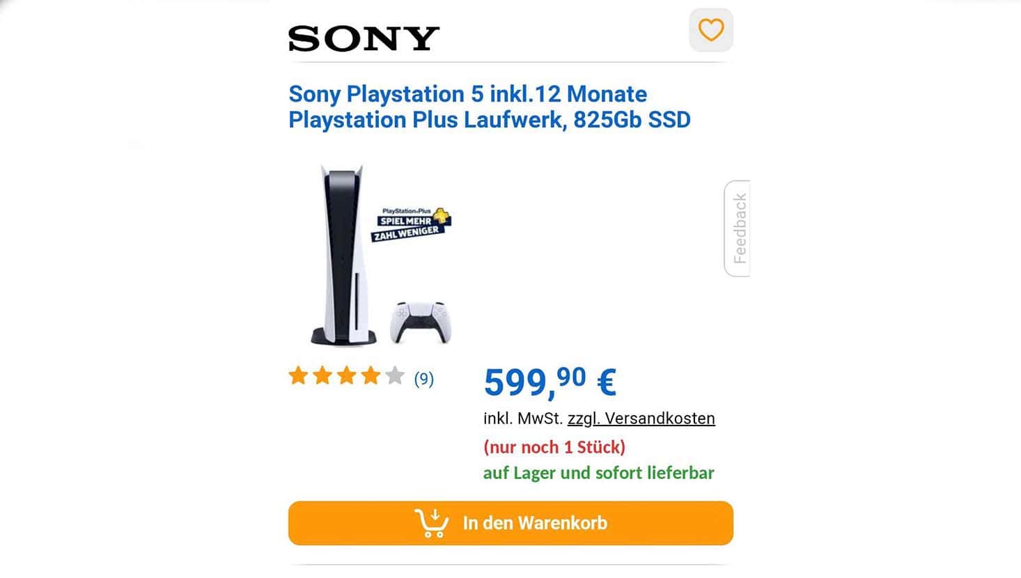 Bei Computeruniverse.de ist ein Bundle aus PlayStation 5 inklusive 12 Monaten PS Plus für 599 Euro zu bekommen.