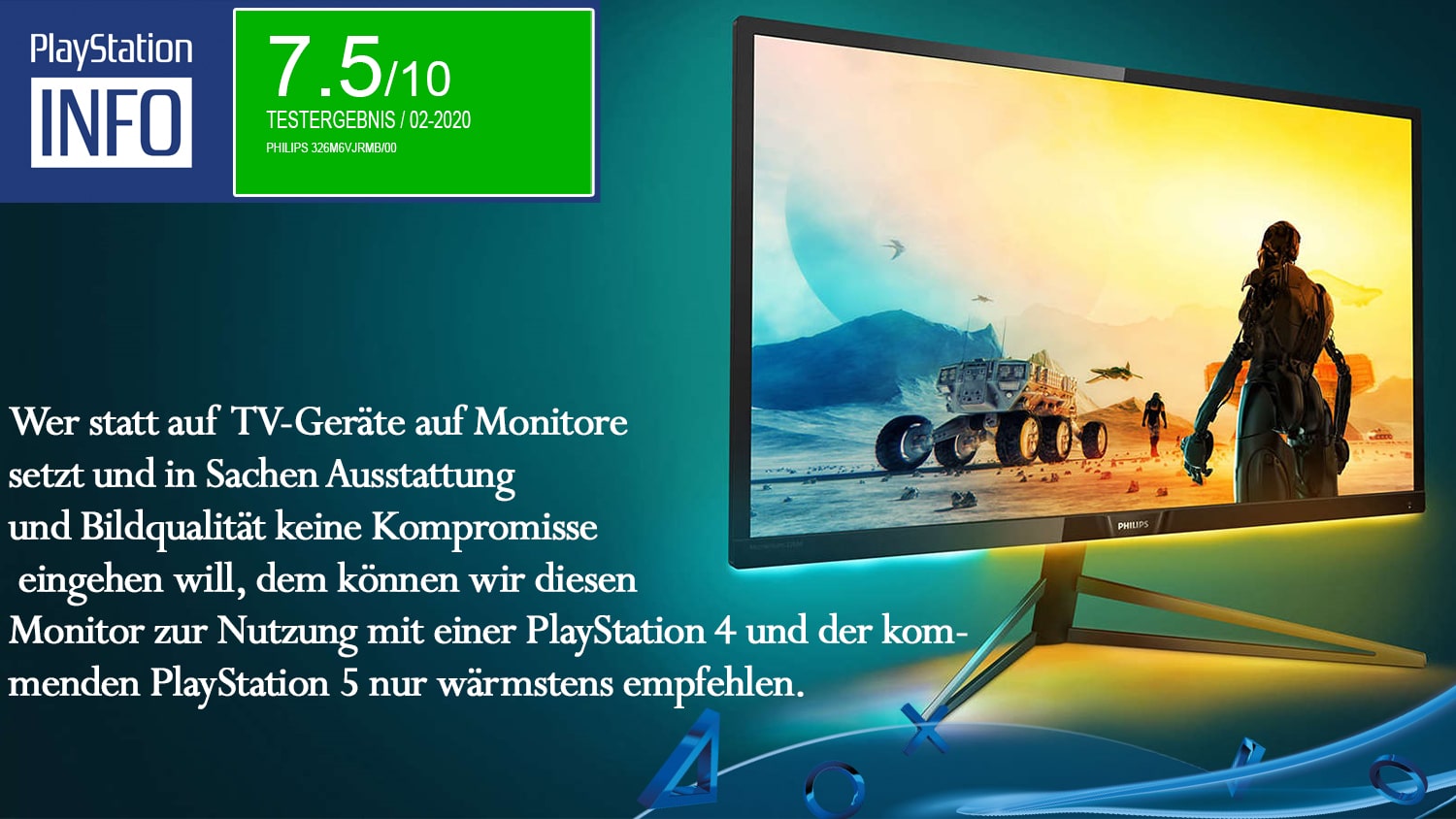 Nach ausgiebigem Test des Philips 326M6VJRMB/00 können wir ein positives Fazit ziehen. Die sehr gute Bildqualität und niedrige Eingabeverzögerung sowie das ansprechende Design mit „Ambiglow“ sind für Gamer wie geschaffen und bieten ein klasse Gaming-Erlebnis. Lediglich der hohe Preis, die fummelige Bedienung und die eher schwachen Lautsprecher trüben den Gesamteindruck ein wenig. Wer aber statt auf TV-Geräte auf Monitore setzt und in Sachen Ausstattung und Bildqualität keine Kompromisse eingehen will, dem können wir diesen Monitor zur Nutzung mit einer PlayStation 4 und der kommenden PlayStation 5 nur wärmstens empfehlen.