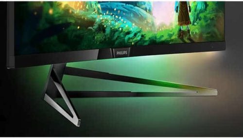Das absolute Highlight ist aber das Philips eigene „Ambiglow“. Dahinter verbirgt sich eine LED-Leiste, die sich auf der Unterseite des Monitors befindet und somit für indirekte Beleuchtung sorgt. Dabei lässt sich die Farbe mit Hilfe des Optionsmenüs komplett individualisieren oder sich der Bildfarbe des Geschehens auf dem Monitor anpassen. Gerade in dunklen Räumen macht das ordentlich was her und ist definitiv ein Hingucker, leider auf Kosten der Bedienung.