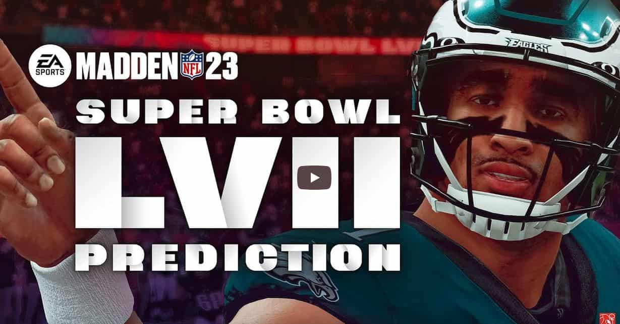 Electronic Arts veröffentlicht die diesjährigen gefeierten Vorhersagen für den bevorstehenden LVII Super Bowl in Glendale, Arizona. Fans der Philadelphia Eagles können sich laut EA Madden NFL 23 am Sonntagabend auf ihren zweiten Super Bowl-Sieg in fünf Jahren freuen – die Eagles werden voraussichtlich Patrick Mahomes und die Kansas City Chiefs mit 31:17 schlagen.