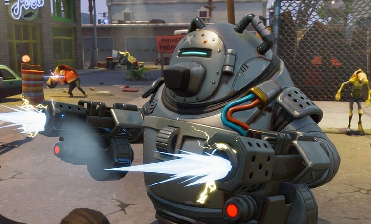 Klären wir zunächst worum es in „Fortnite“ überhaupt geht. Ein mysteriöser Sturm hat die Erde heimgesucht und 98% der Bevölkerung verschwinden lassen. Auch wenn es sich hierbei bereits eine grauenvolle Vorstellung handelt, stellt das keineswegs eine Grundlage für ein Videospiel dar. Und so dürfen sich die Spieler obendrein über einige Monster freuen, die selbstverständlich nicht freundlich sind. In gewohnter Weise liegt es also am Spieler selbst, die Welt zu retten. Und so arbeitet man sich durch zahlreiche Missionen, die auf ein grundlegendes Prinzip beruhen. Zunächst erkunden man die Umgebung, um das gesuchte Objekt zu finden. Dieses aktiviert man und muss es für eine bestimmte Zeit gegen unaufhörliche Wellen an Gegnern verteidigen.