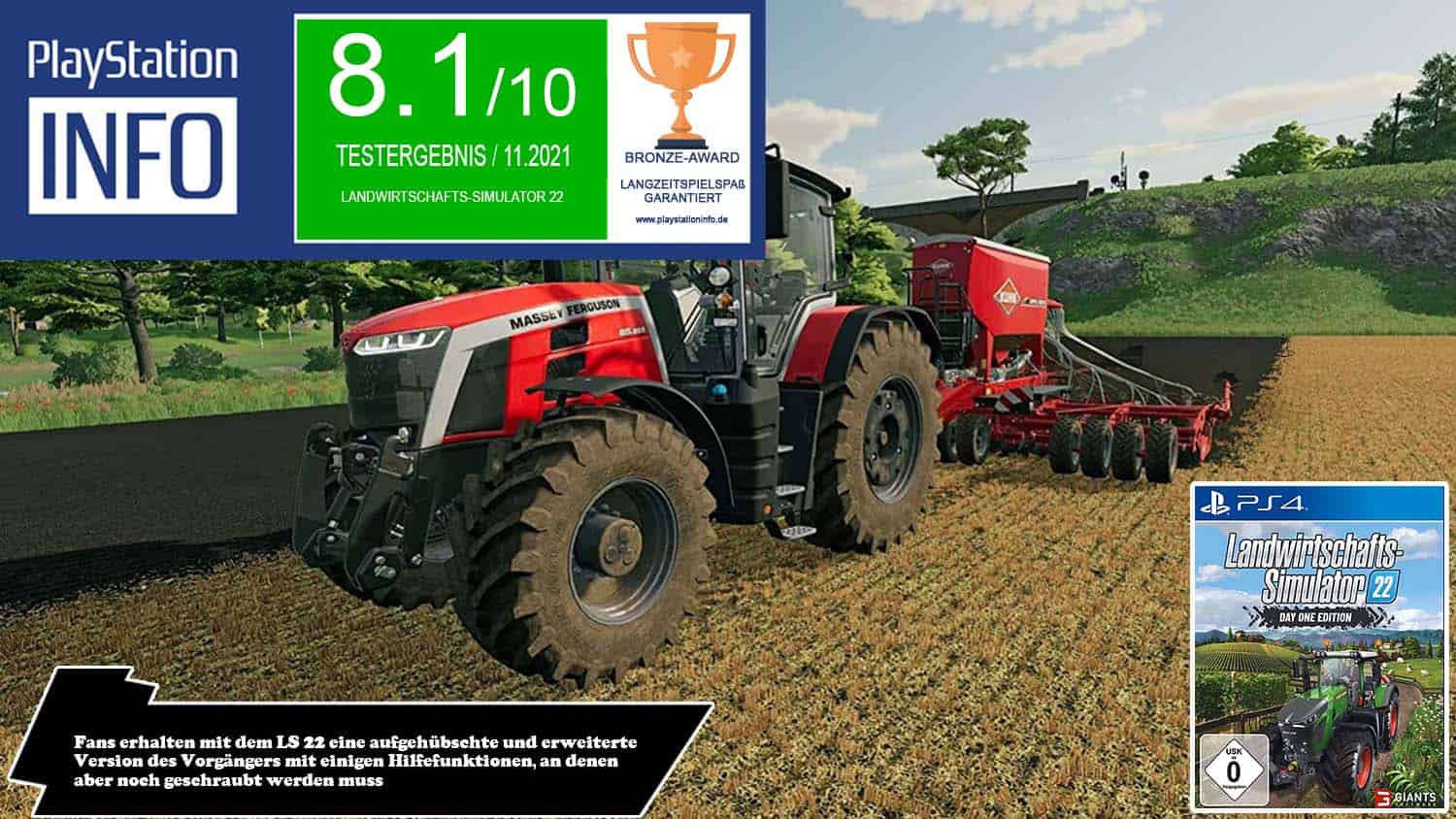 Der Landwirtschafts-Simulator 22 ist eine konstante Evolution des Vorgängers. Er bringt einige Features wie etwa die Jahreszeiten, die aber auch schon im Vorgänger als Mod verfügbar waren oder hilfreiche Produktionsketten mit sich. Ansonsten bietet der LS 22 das gewohnte Spielprinzip nur in hübscherer Umgebung und kleinen Anpassungen und Erweiterungen mit neuen Fruchtsorten und Tieren.