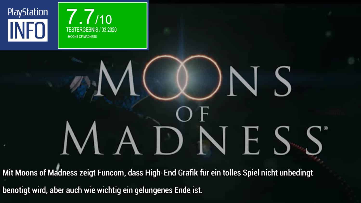 Mit Moons of Madness zeigt Funcom, dass High-End Grafik für ein tolles Spiel nicht unbedingt benötigt wird, aber auch wie wichtig ein gelungenes Ende ist. Mit tollen Sounds und viel Liebe zum Detail schaffen die Entwickler eine gelungene Atmosphäre, die den Spieler vollkommen in die Story eintauchen lässt. Die gut verteilten Rätsel könnten für manche Gamer wohl etwas schwieriger sein, unterhalten dürften sie aber jeden und das ohne die mystische Spannung zu unterbrechen, die allgegenwärtig ist.