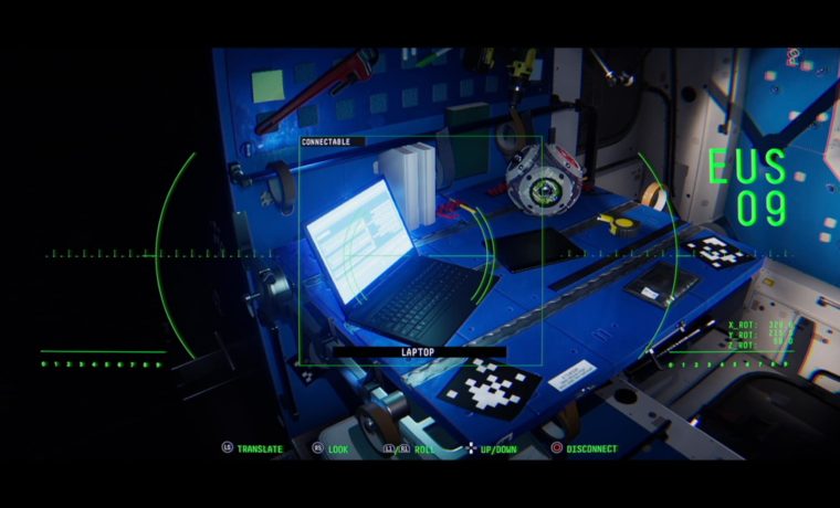 Um die zuvor angesprochene Luftschleuse zu öffnen, verschaffen wir uns Zugang zu einigen Kameras. Nun sehen wir einen Raum auf der anderen Seite. Dort können wir mit verschiedenen Objekte interagieren. Beispielsweise verknüpfen wir uns mit einem Laptop oder einer Zugangskonsole. Aufgrund des Blackouts wissen wir aktuell aber nicht, wie man Systemverbindungen zurücksetzt, was für die kommenden Handlungen notwendig ist. Also durchsuchen wir weiter den Raum und finden einen Zettel an der Wand, den wir scannen und somit das notwendige Wissen erlangen. Anschließend stellen wir eine Verbindung zu verschiedenen Geräten her und können die Schleuse letztendlich öffnen.