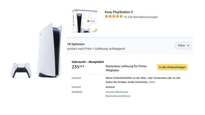 Einige Leser haben uns darauf aufmerksam gemacht, dass die Sony PlayStation 5 Konsole gerade gebraucht bei Amazon angeboten wird.
