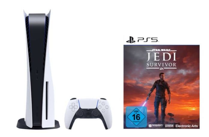 Wenn man eine PS5 kaufen möchte, bietet Media Markt und Saturn ein spezielles Angebot an. Man kann die Konsole in der Disk Edition zusammen mit dem Spiel „Star Wars Jedi: Survivor“ kaufen und 60 Euro sparen.