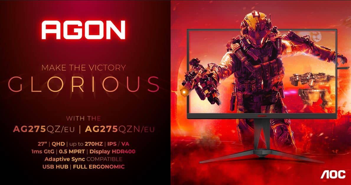 AGON by AOC – eine der weltweit führenden Gaming-Monitor1- und IT-Zubehörmarken – präsentiert zwei neue Modelle aus dem brandneuen AGON 5 Line-up: Der 68,6 cm (27″) große AGON AG275QZ/EU kombiniert ein Fast IPS-Panel mit Quantum-Dot-Schicht für 1,07 Milliarden Farben mit einer Bildwiederholrate von 240 Hz (übersteuerbar auf 270 Hz) und einer Reaktionszeit von 1 ms GtG beziehungsweise 0,5 ms MPRT. Das gleich große, preislich unterhalb angesiedelte Geschwistermodell AGON AG275QZN/EU verfügt dagegen über ein schnelles VA-Panel mit hohem Kontrast und den gleichen Spezifikationen auf E-Sport-Niveau: 240 Hz Bildwiederholfrequenz, 1 ms GtG beziehungsweise 0,5 ms MPRT-Reaktionszeit.