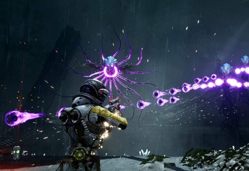 Returnal ist schnell und verzeiht so gut wie keine Fehler. Wer jetzt bei dem hohen Schwierigkeitsgrad und dem Rückkehrungsfeature an etwa Dark Souls denkt, der liegt leider falsch. Denn bei einem Tod verliert man so gut wie alle gefundenen Gegenstände und Waffen. Rougelike eben. Nur wenige wichtige Gegenstände wie etwa die Nahkampfwaffe und wichtige Schlüssel bleiben erhalten. Außerdem wird mit zunehmender Spieldauer die Waffenstufe konstant angehoben. So fängt man nicht ganz bei Null an. Bei Dark Souls kann man aber gezielter leveln und sich das Leben so etwas leichter machen. Das geht in Returnal aber nicht. Hier gilt es aus Fehlern lernen. Denn bei jedem Durchgang trefft ihr an dem gleichen Ort auf andere Gegnerformationen. Diese zwingen euch dazu umzudenken und das gelernte umzusetzen. Des Weiteren kommt hier auch noch das Zufallsprinzip hinzu, was leider auch zu Frust führen kann. Denn im Zweifelsfall findet ihr kaum Waffen oder Heilgegenstände und so kann dieser Durchgang schwerer werden. Denn die Gegnerwellen sind endlich und kommen nach dem sie besiegt wurden erst im nächsten Zyklus wieder. So bleibt auch die Währung des Spiels, die man von bezwungenen Gegnern erhält begrenzt und es lassen sich nicht unendlich viel Gegenstände kaufen. Am Ende siegt jedoch ruhiges und bedachtes Vorgehen. Da Returnal dadurch nicht unfair wird, sondern man einfach eine ungewohnte Situation meistern muss oder eben daran scheitert und daraus lernt, ist dieser Punkt nicht wirklich negativ.