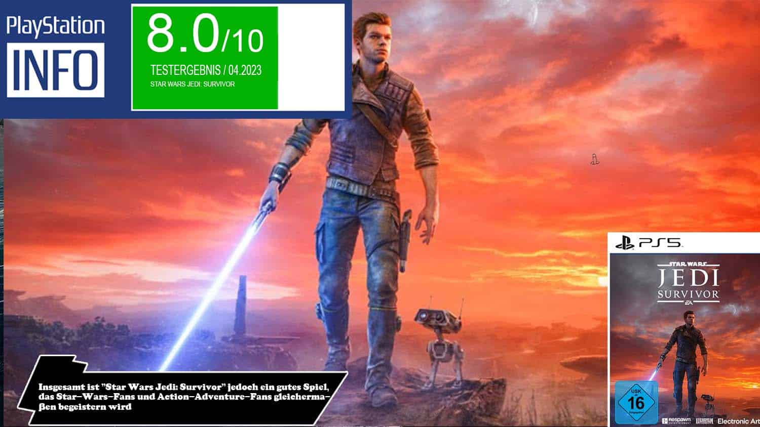ist „Star Wars Jedi: Survivor“ jedoch ein beeindruckendes Spiel, das Star-Wars-Fans und Action-Adventure-Fans gleichermaßen begeistern wird. Die Geschichte und Charaktere sind fesselnd, das Gameplay ist abwechslungsreich und herausfordernd, und die Grafik ist atemberaubend. Wenn Sie auf der Suche nach einem neuen Abenteuer in einer weit, weit entfernten Galaxie sind, ist „Star Wars Jedi: Survivor“ definitiv einen Blick wert.
