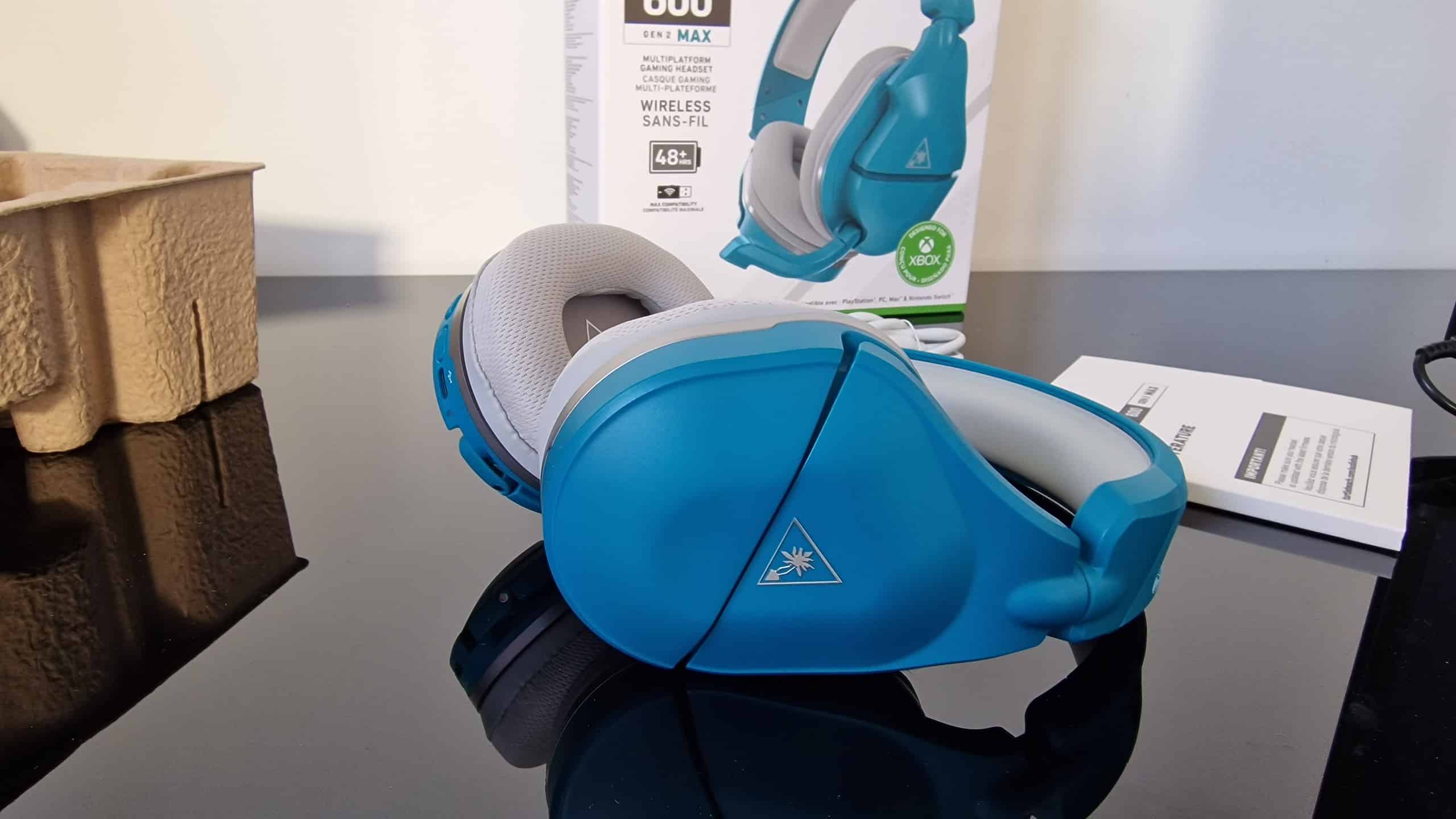 Das Design und der Komfort sind wichtige Faktoren bei der Auswahl eines Gaming-Kopfhörers, da Du ihn möglicherweise stundenlang tragen wirst. Der Turtle Beach Stealth 600 Gen 2 Max hat ein schlankes und modernes Design, das sich gut in jede Gaming-Setup integriert. Der Kopfhörer ist in Schwarz mit blauen Akzenten erhältlich und verfügt über ein einzigartiges Muster auf den Ohrmuscheln, das ihm eine gewisse Ästhetik verleiht.