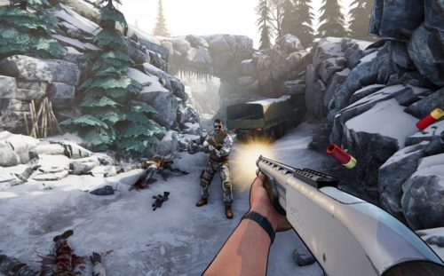 Wie zu erwarten hat sich auch das grundsätzliche Gameplay nicht verändert. Man schießt und schleicht sich durch die von Gegnern besetzten Gebiete und setzt hin und wieder ein Gadget ein. Das Waffenarsenal blieb hierbei unverändert und bietet neben Pistolen und Revolvern auch Sturmgewehre, Schrottflinten oder eine Armbrust. Um die gegnerischen Einrichtungen zu infiltrieren, stehen uns zudem etwa ein Diedrich oder ein Enterhaken zur Verfügung. Das Problem hier? Die Steuerung! Denn diese ist im Vergleich zum Original total misslungen und es fühlt sich einfach nicht gut an den Enterhaken zu benutzten. Die Schussgefechte machen übrigens auch keinen Spaß und das liegt nicht an der Mechanik, denn die ist eigentlich grundsolide. Aber die Gegner KI ist miserabel geworden. Die Feinde rennen wild durcheinander oder bleiben an bestimmten Stellen hängen. Das ist wohl auch den Entwicklern klar gewesen. Denn es wurden gefühlt deutlich mehr Gegner in den Level verteilt, was die Schwierigkeit deutlich und künstlich anhebt. Außerdem werden wir beim schleichen viel zu leicht entdeckt und wir müssen dann oft vom nächsten Checkpoint starten. Hier stören dann die wirklich langen Ladezeiten. So macht das einfach keinen Spaß.